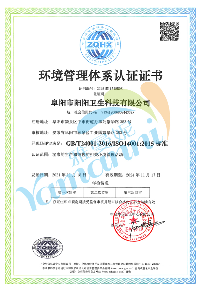 環(huán)境管理體系認(rèn)證是指由第三方公證機(jī)構(gòu)依據(jù)公開發(fā)布的環(huán)境管理體系標(biāo)準(zhǔn)(ISO14000環(huán)境管理系列標(biāo)準(zhǔn)),對供方(生產(chǎn)方)的環(huán)境管理體系實(shí)施評定,評定合格的由第三方機(jī)構(gòu)頒發(fā)環(huán)境管理體系認(rèn)證證書,并給予注冊公布,證明供方具有按既定環(huán)境保護(hù)標(biāo)準(zhǔn)和法規(guī)要求提供產(chǎn)品或服務(wù)的環(huán)境保證能力。通過環(huán)境管理體系認(rèn)證,可以證實(shí)生產(chǎn)廠使用的原材料、生產(chǎn)工藝、加工方法以及產(chǎn)品的使用和用后處置是否符合環(huán)境保護(hù)標(biāo)準(zhǔn)和法規(guī)的要求。雅曼妮產(chǎn)品符合:GB/T24001-2016/ISO14001:2015標(biāo)準(zhǔn)